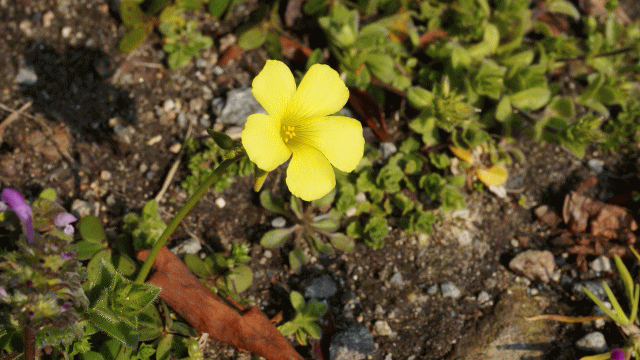 黄色く小さいこの花は、手入れを怠った花壇の縁や、植え込みの周囲でよく見かけた。